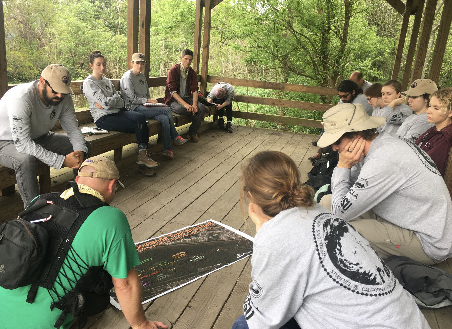 The study area is located in Belle Chasse, Louisiana at the Woodlands Conservancy. Methods included species identification, percent cover, leaf litter, diameter and height along 100 meter transects throughout the study area.This project assesses invasive species management and wetland health post Hurricane Katrina. The Service Learning in New Orleans trip occurs every spring at CSUCI.